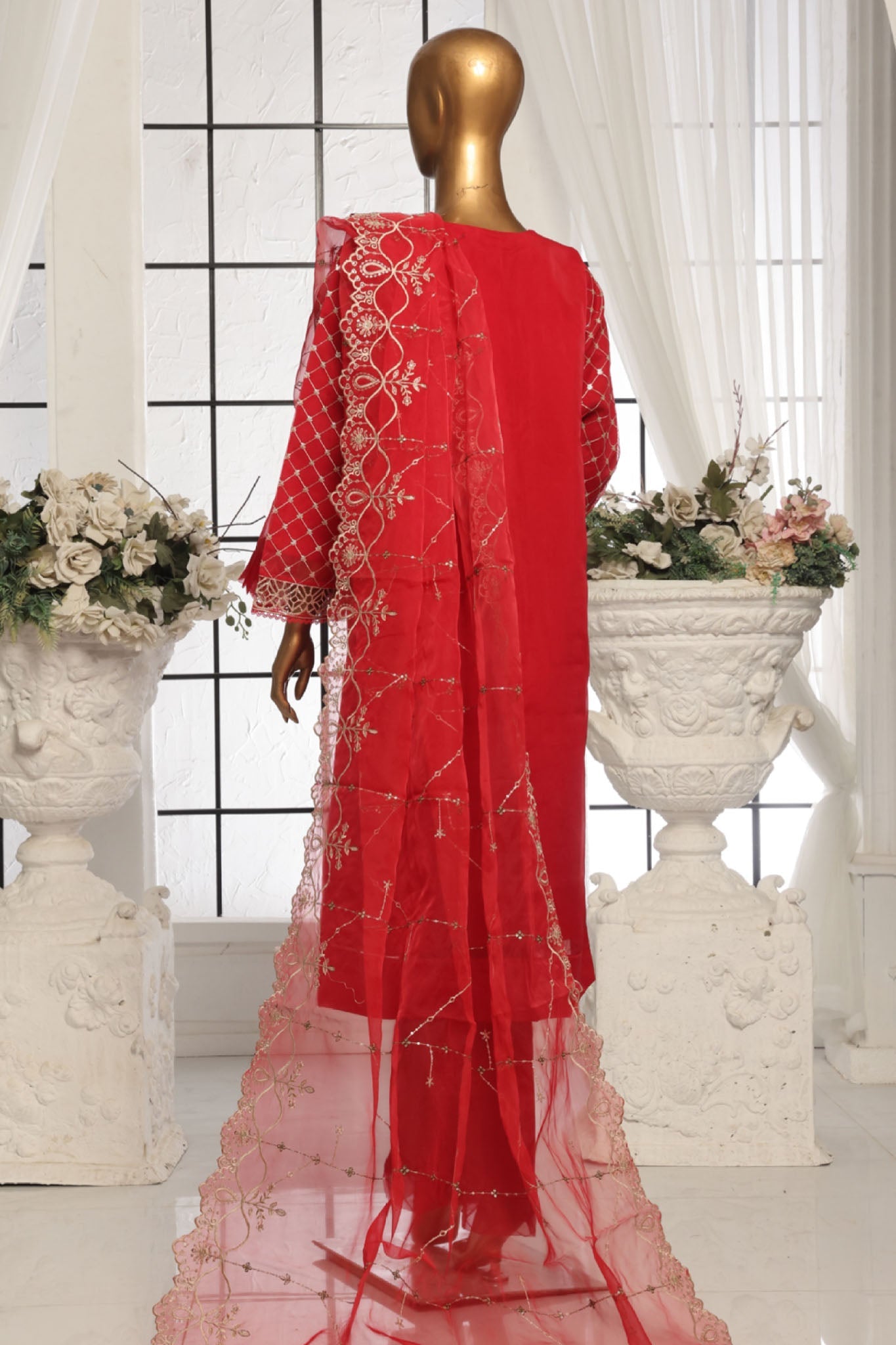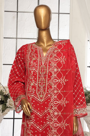 Bin Saeed Stitched 3 Piece Luxury Emb Organza Collection'2025-OWS-1588-Red