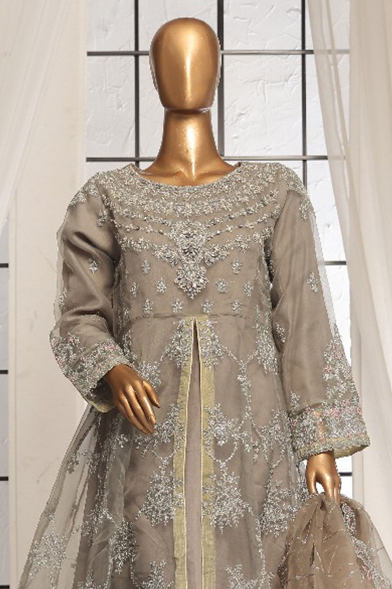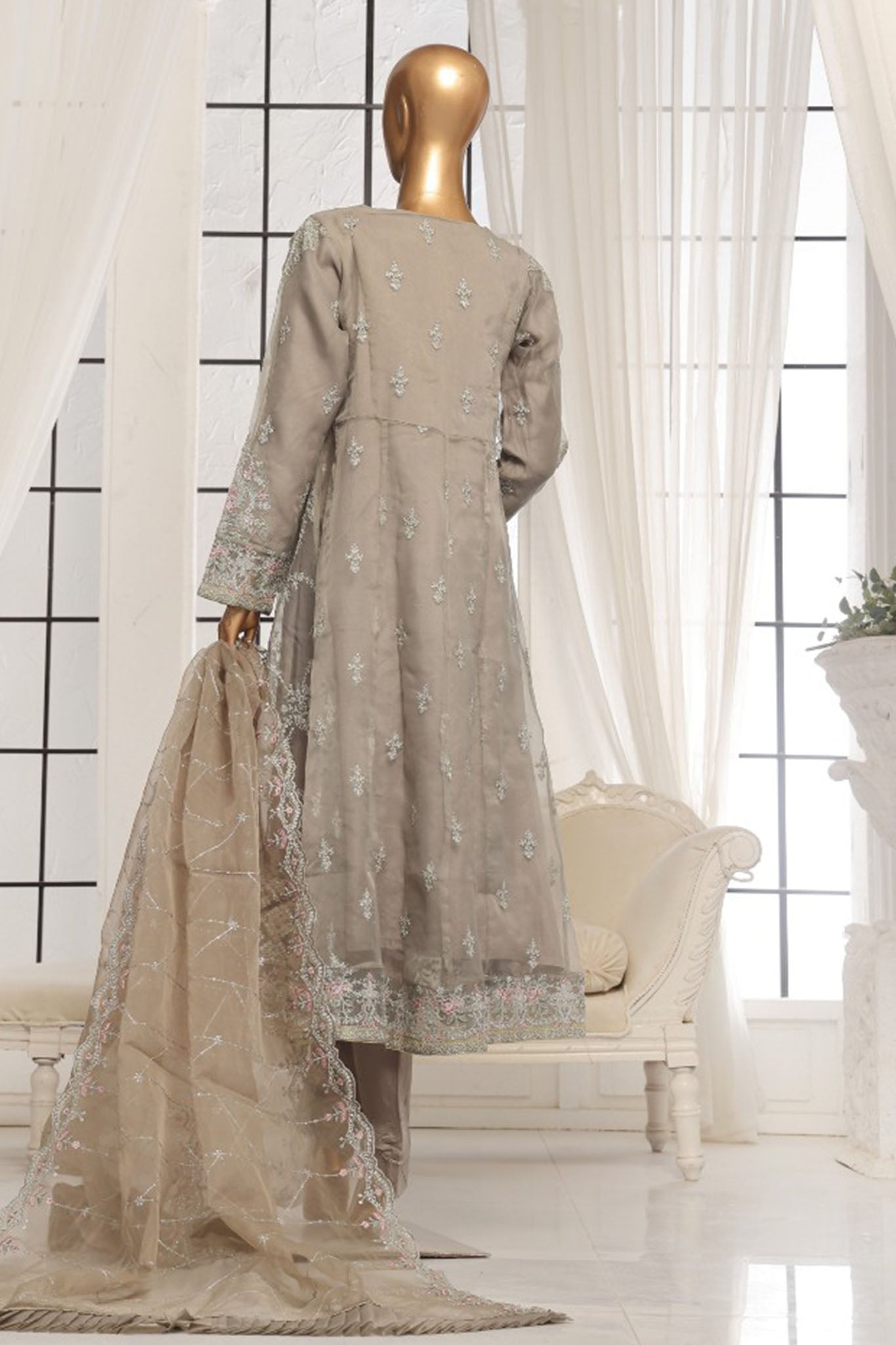 Bin Saeed Stitched 3 Piece Luxury Emb Organza Frock Collection'2025-OWS-1832-Grey