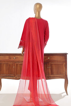 Bin Saeed Stitched 3 Piece Luxury Plain Cotton Collection-LF-1490-Red