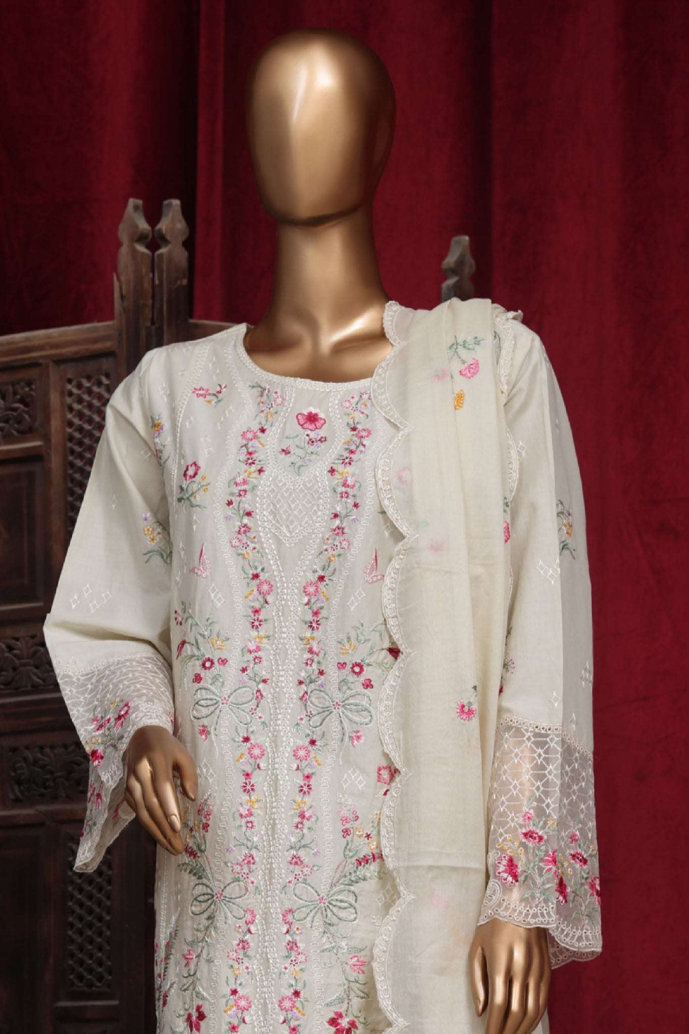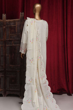 - Stitched 3 Piece Luxury Plain Cotton With Embroidered Dupatta Suit