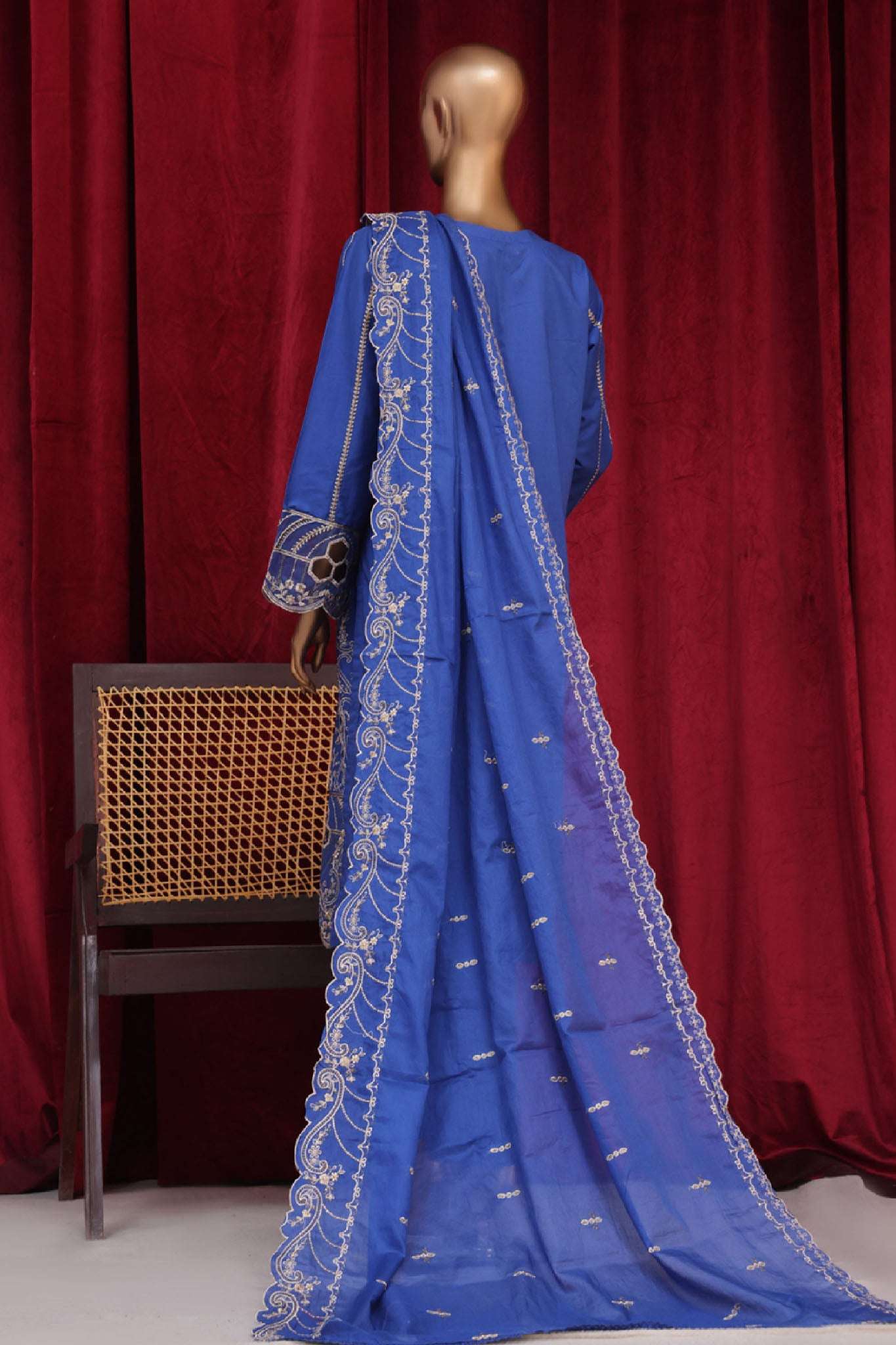 Bin Saeed Stitched 3 Piece Luxury Plain Cotton Vol-01 Collection-PC-1543-Blue