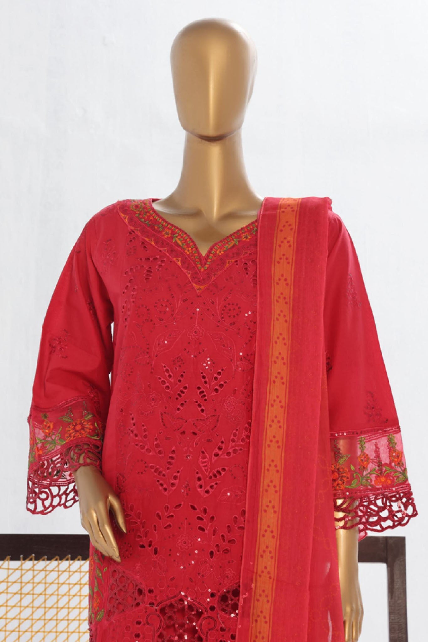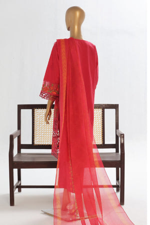 Bin Saeed Stitched 3 Piece Luxury Plain Cotton Vol-02 Collection-LF-1611-Red