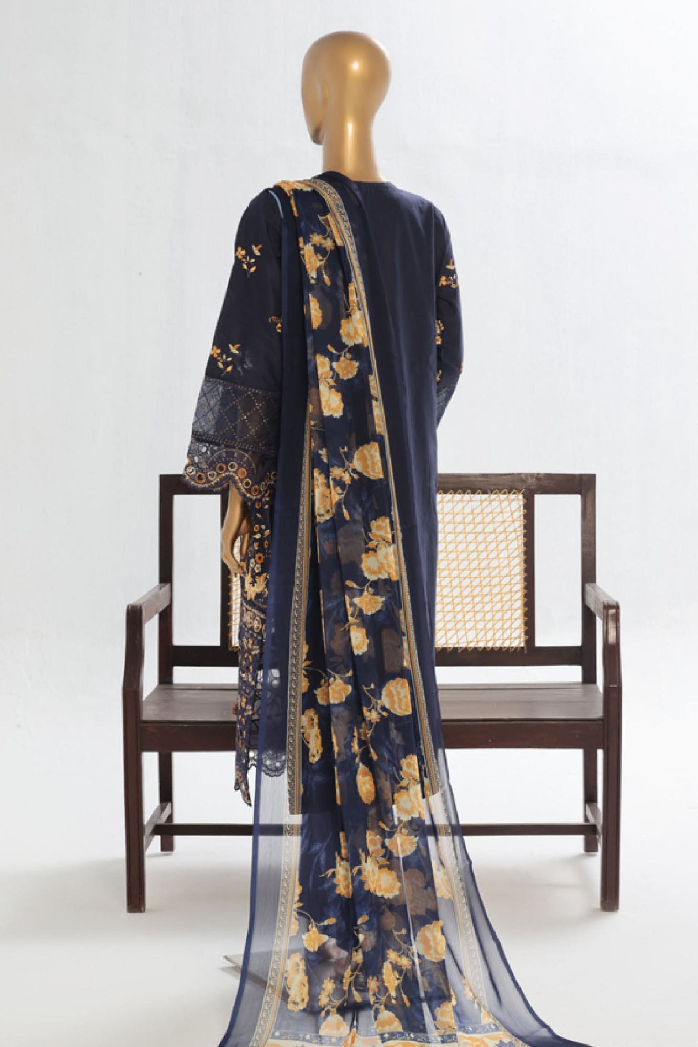 Bin Saeed Stitched 3 Piece Luxury Plain Cotton Vol-02 Collection-LF-1615-Blue