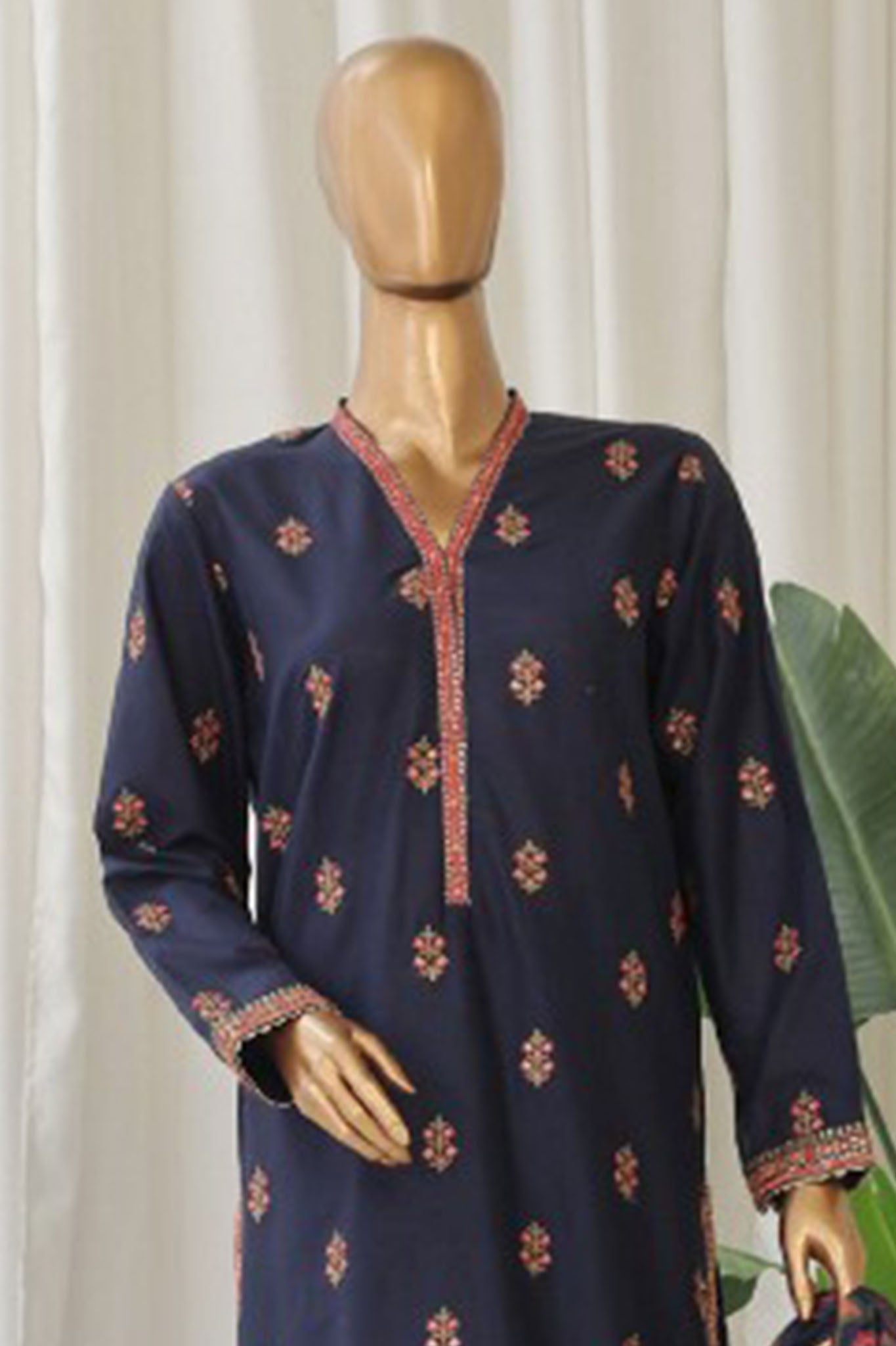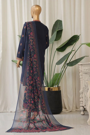 Bin Saeed Stitched 3 Piece Luxury Plain Cotton With Chiffon Dupatta Collection'2025-SMPC-1828-Navy Blue