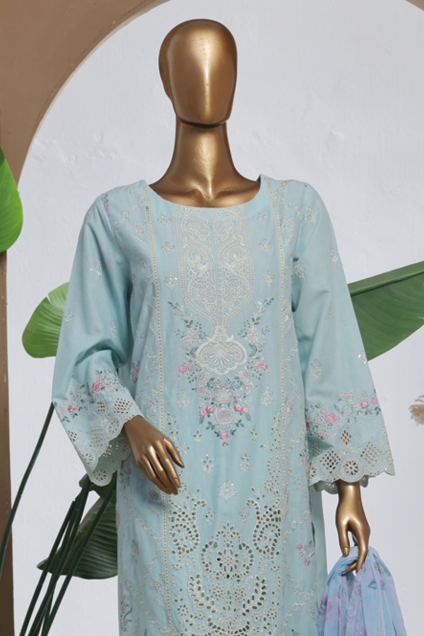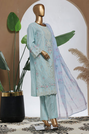Bin Saeed Stitched 3 Piece Luxury Plain Cotton With Chiffon Dupatta Collection'2025-SMPC-2069-Sky Blue
