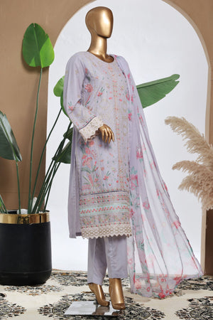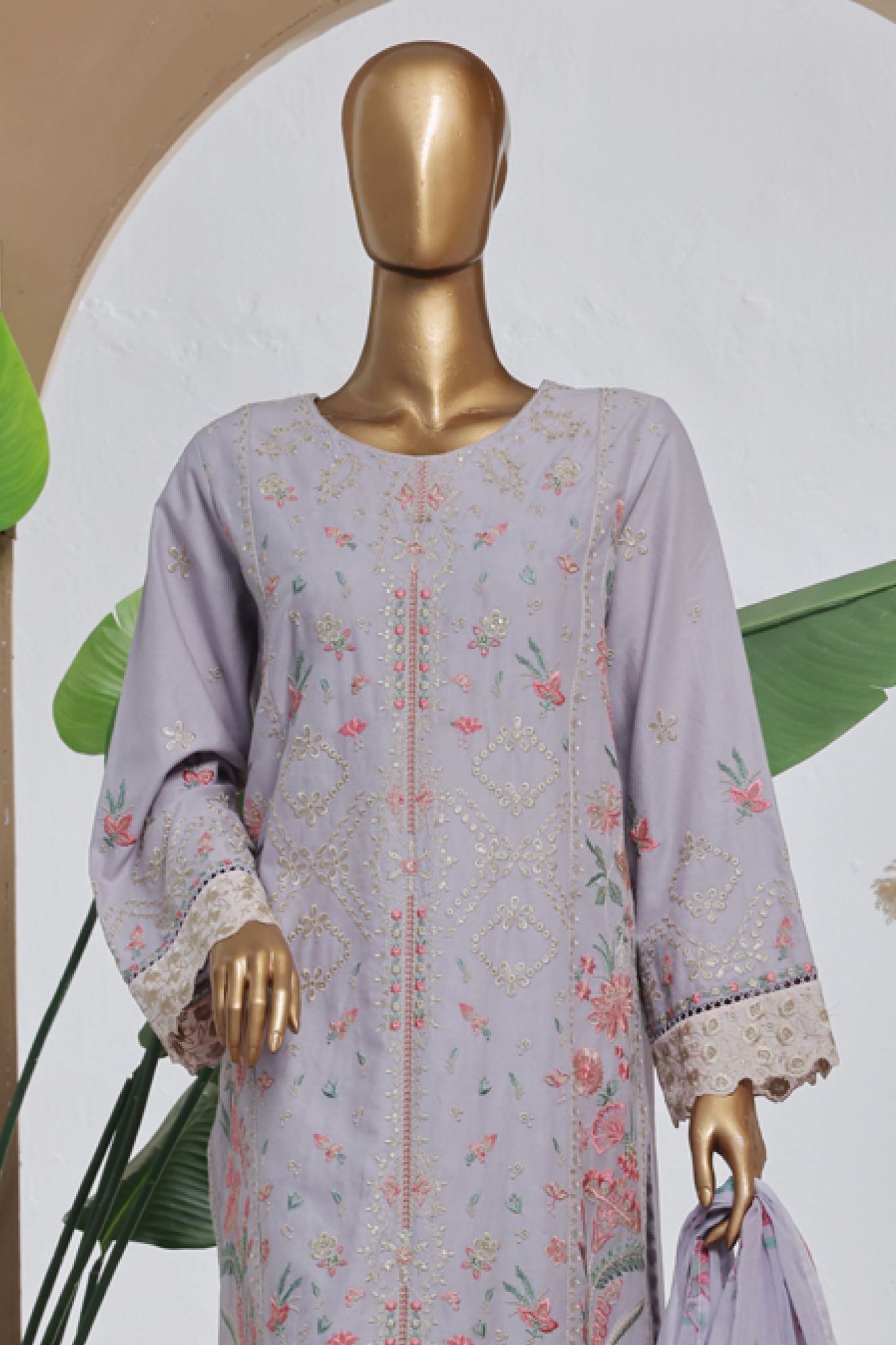 Bin Saeed Stitched 3 Piece Luxury Plain Cotton With Chiffon Dupatta Collection'2025-SMPC-2071-Lilac