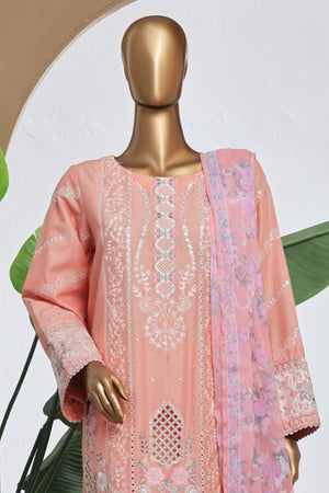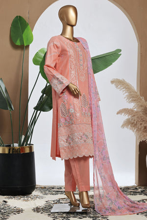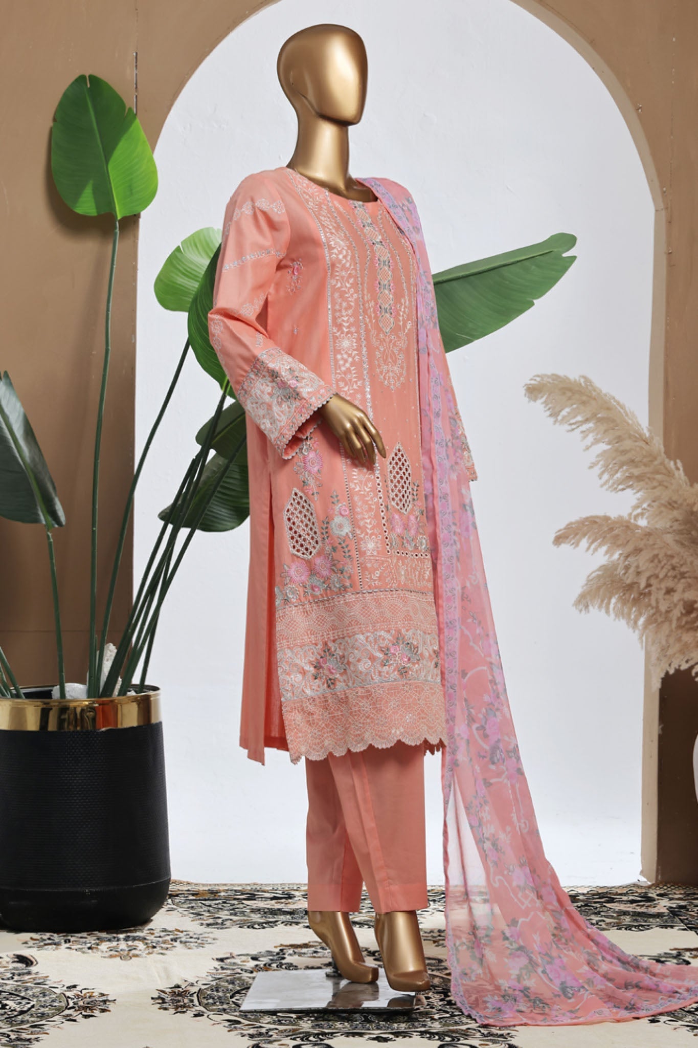 Bin Saeed Stitched 3 Piece Luxury Plain Cotton With Chiffon Dupatta Collection'2025-SMPC-2078-Coral