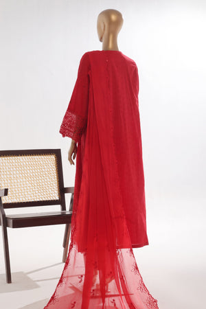Bin Saeed Stitched 3 Piece Luxury Self & Self Frock Collection-SMK-1596-Red