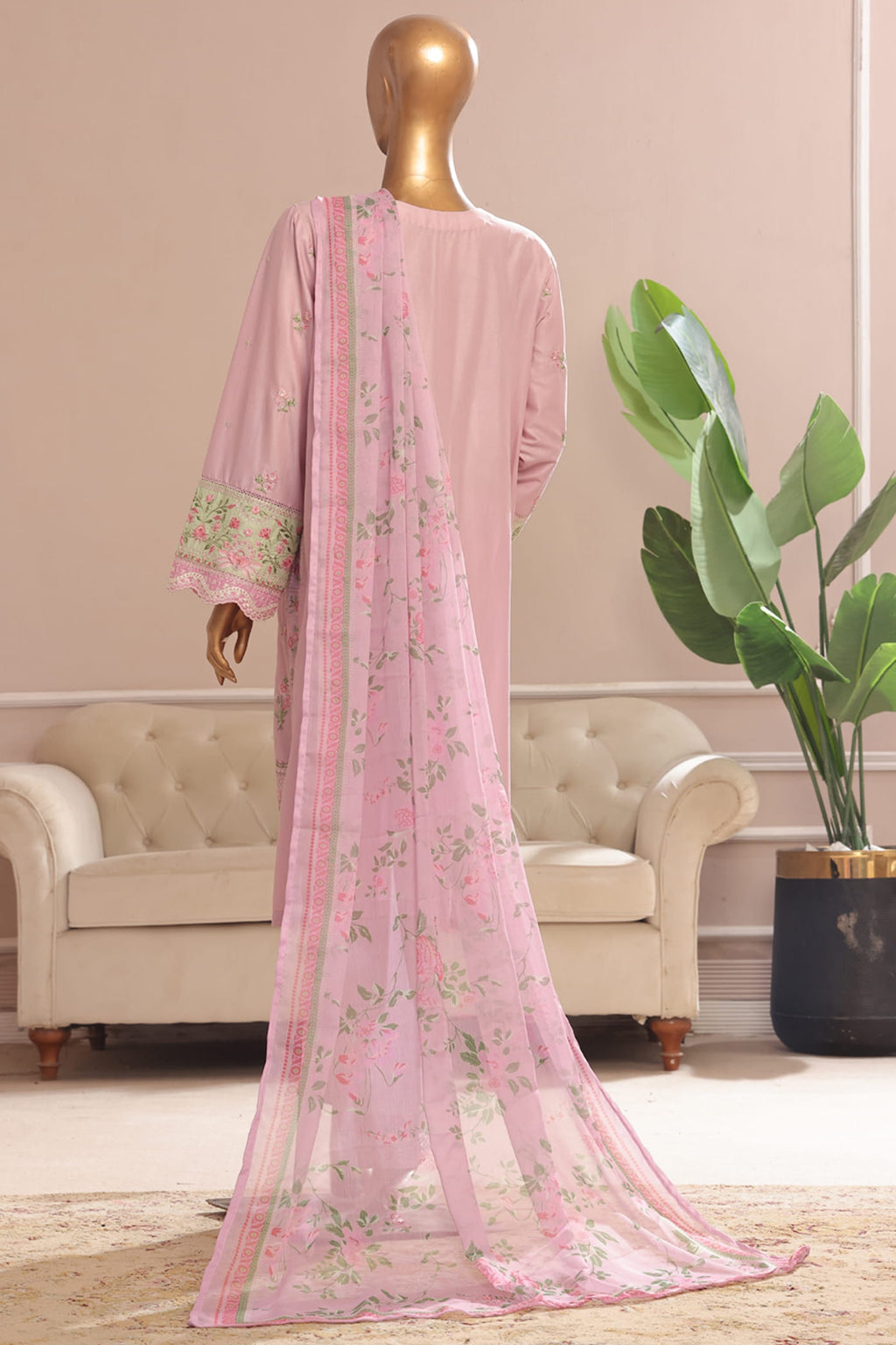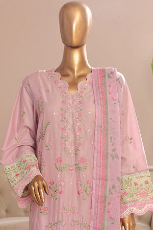 Bin Saeed Stitched 3 Piece Plain Cotton with Emb Trouser Collection'2025-SMPC-1970-Pink