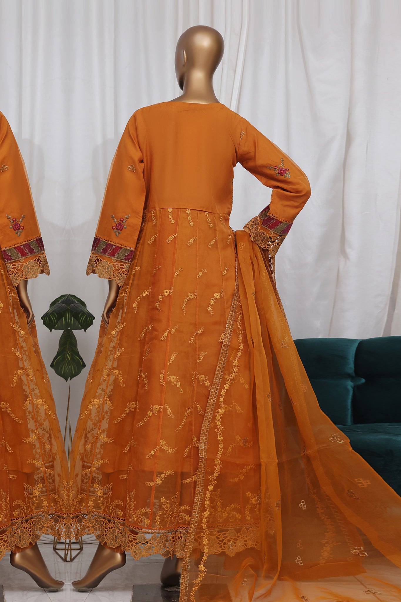 Bin Saeed Stitched 3 Piece Luxury Emb Frock Collection'2025-ZEF-2301-Mustard