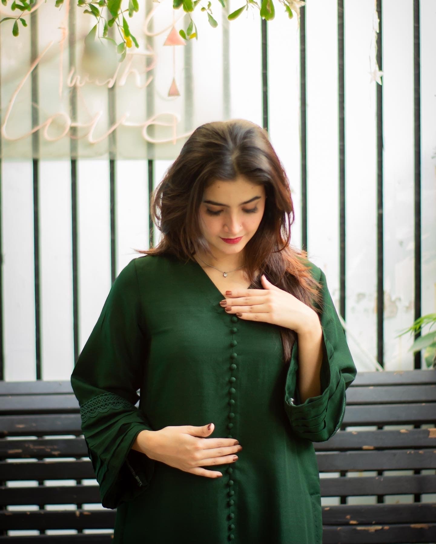 Zauk Stitched 2 Piece Collection-Bottle Green Two Piece Dress