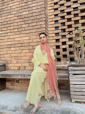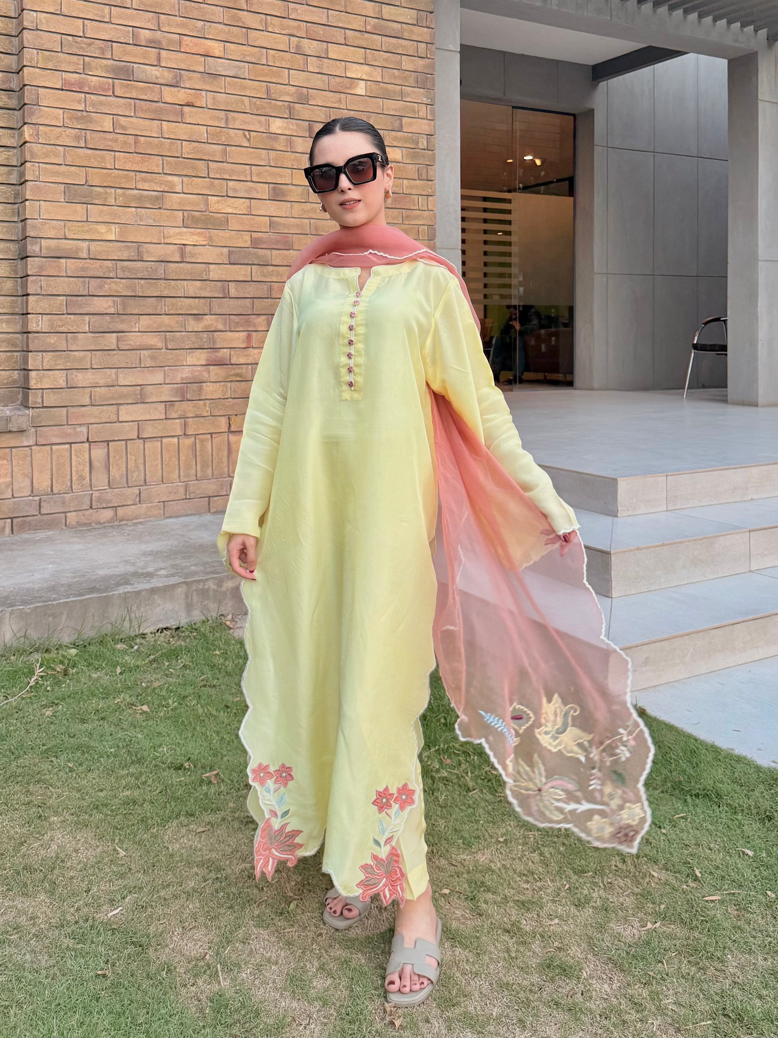 Zaman By MNM Stitched 3 Piece Ramen Silk Collection'2025-Butter petals
