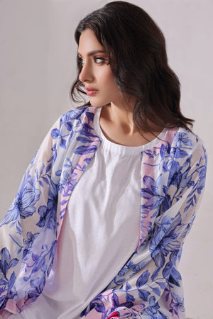 Ora Fashion Stitched 3 Piece Summer Collection'2025-CARDIGAN with Shirt & Farshi Bottom