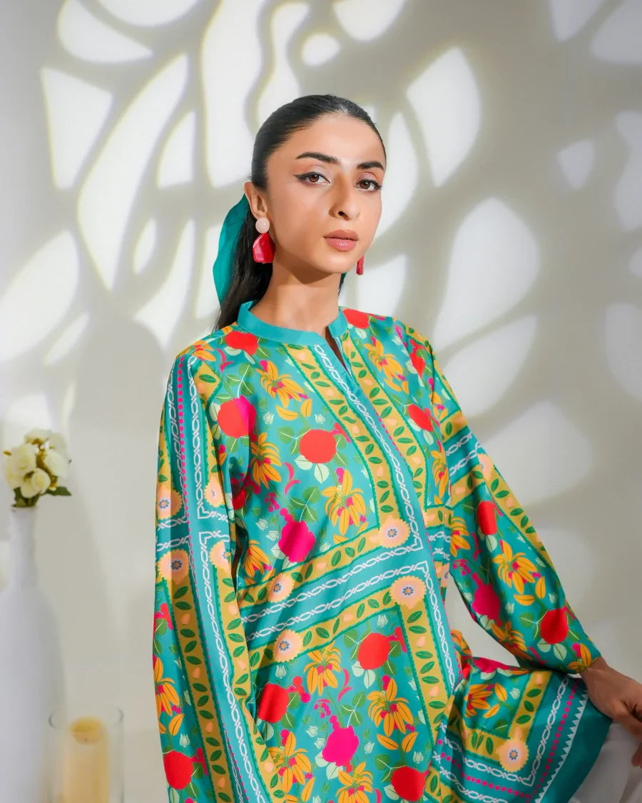 This 2 piece printed-colored co-ord set features luxurious and comfortable fabric and impeccable cuts given to every detail of the article, offering versatility and sophistication for any occasion.
