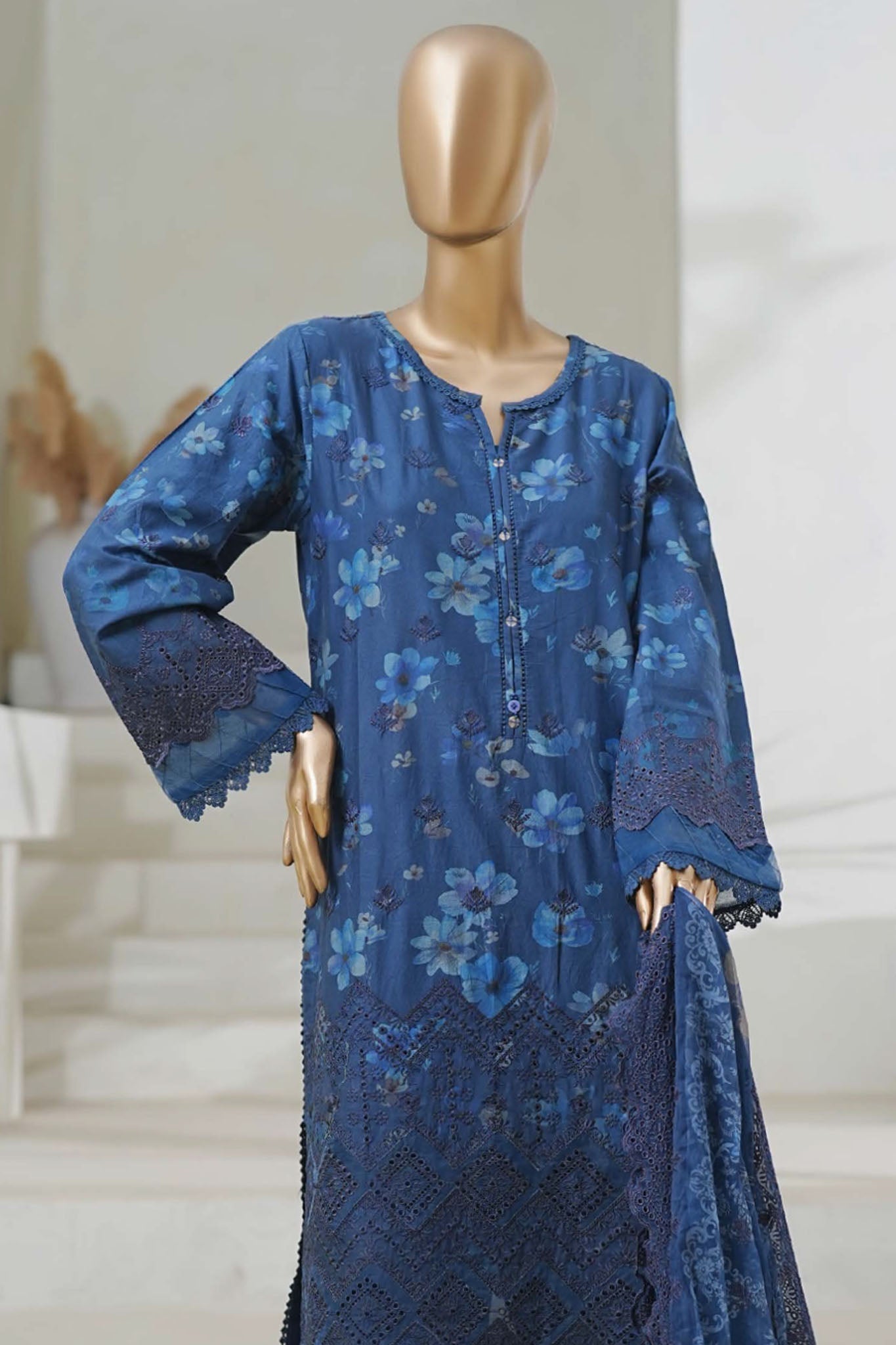 Sada Bahar Stitched 3 Piece Cutwork Chikankari Collection'2025-CKP-02-Navy Blue