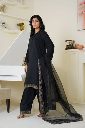 Threads & Weaves Classic Black Embroidered Viscose 3-Piece Suit