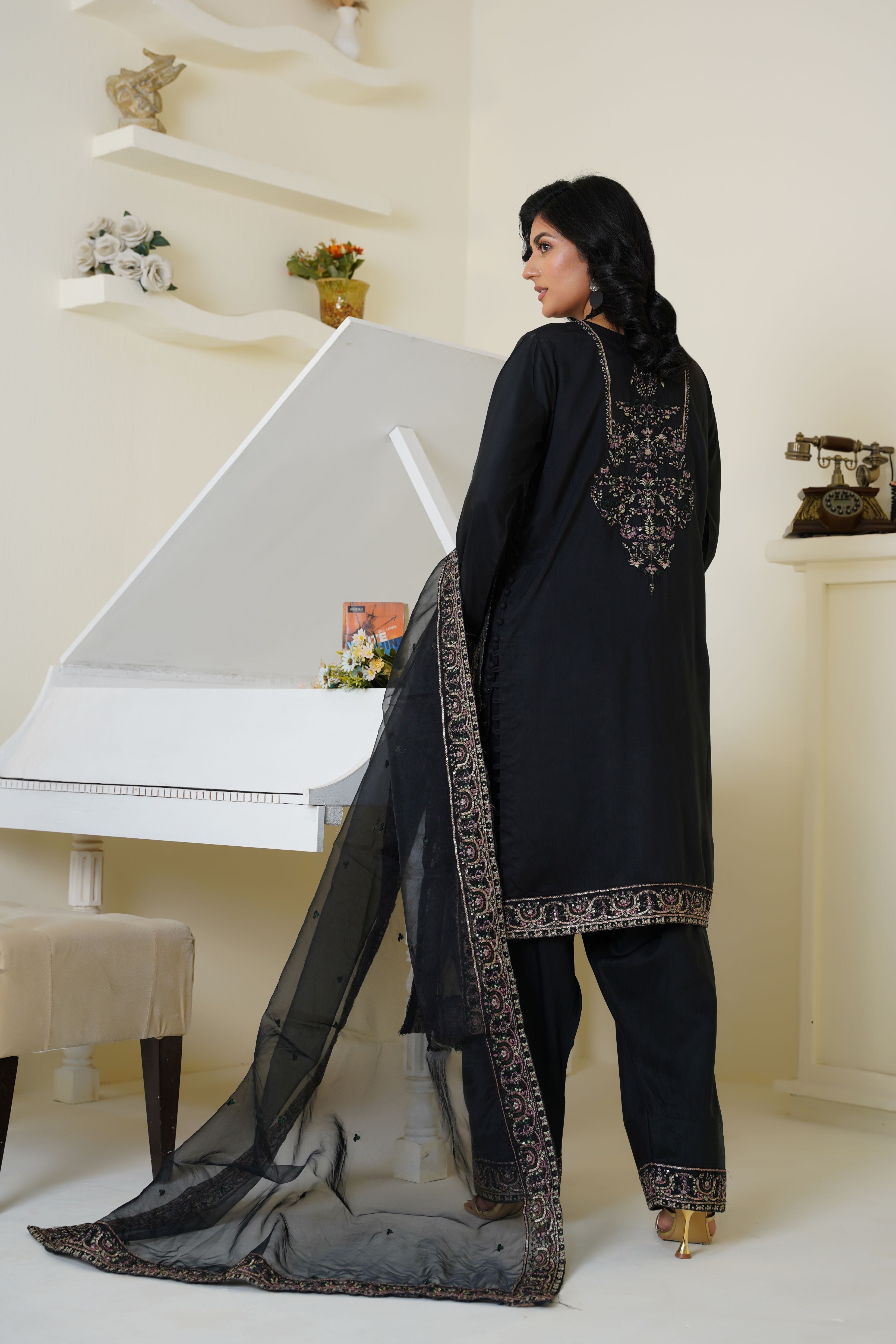·        Color: Classic black with delicate embroidery
