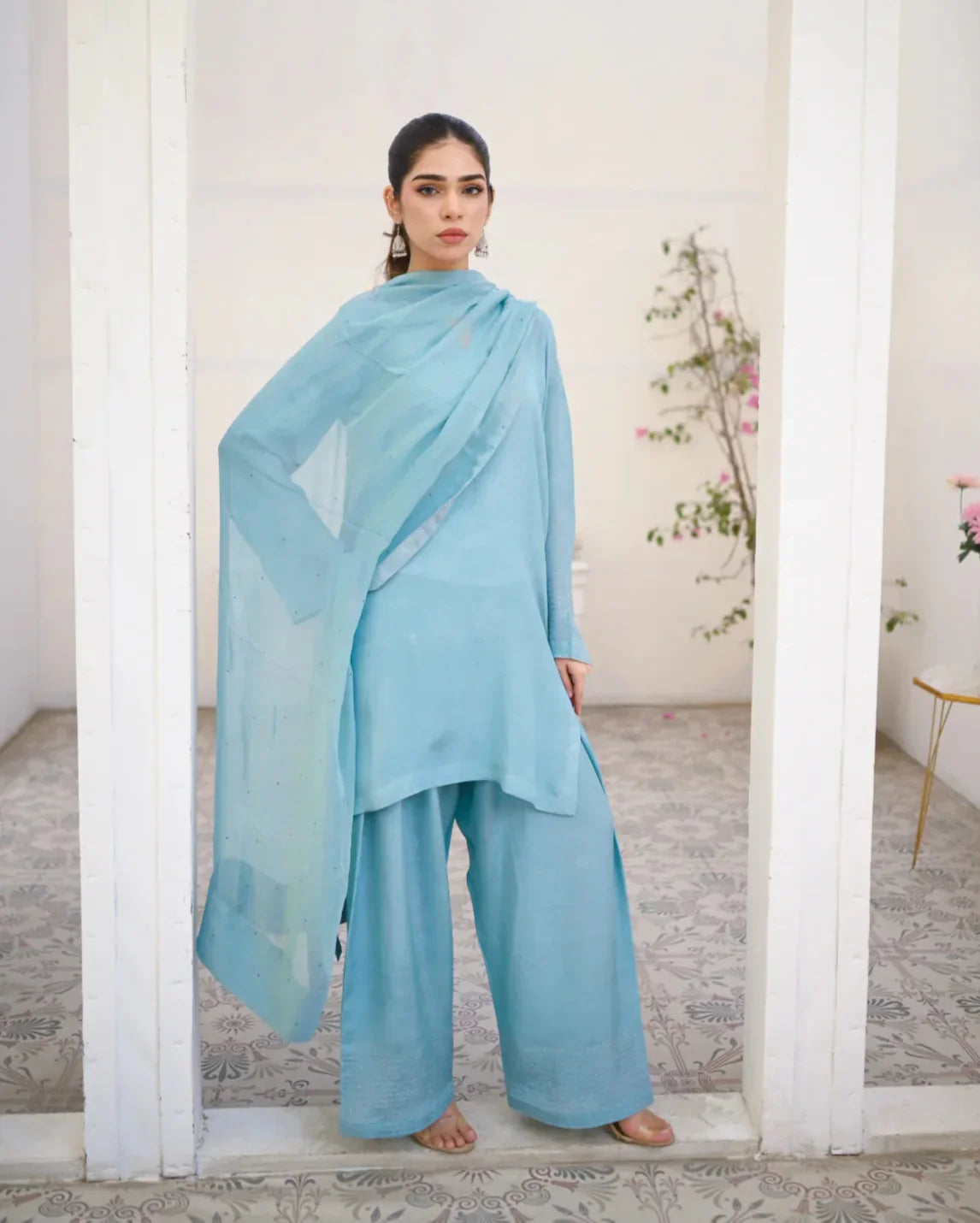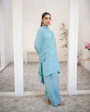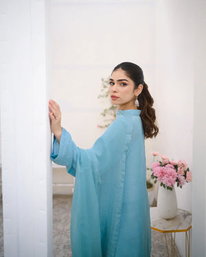 Zauk Stitched 3 Piece Collection-Cyan - Farshi Shalwar Set