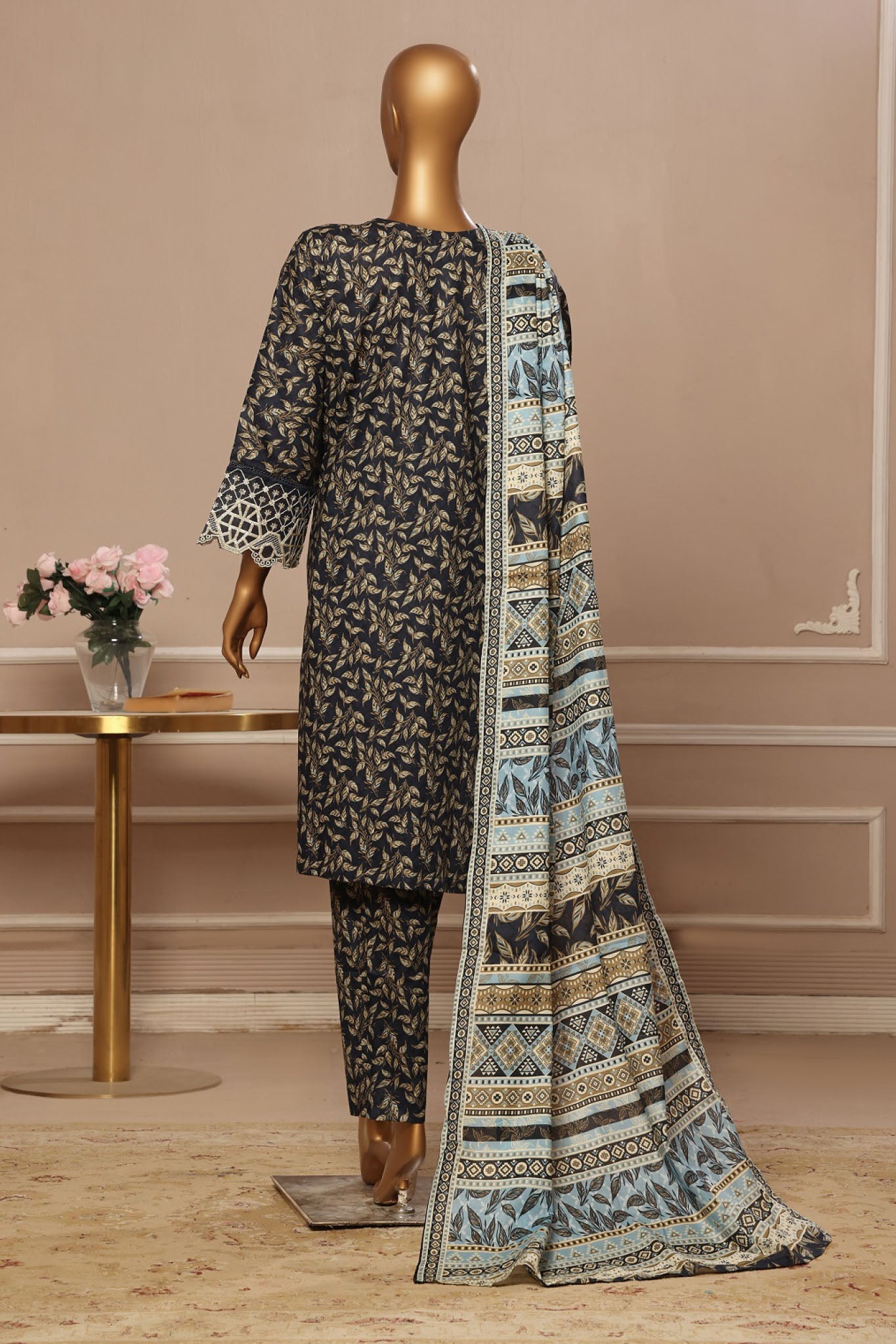 Eid Ke Rang By Bin Saeed Stitched 3 Piece Chikankari Lawn Collection'2025-WC-1786-Navy Blue