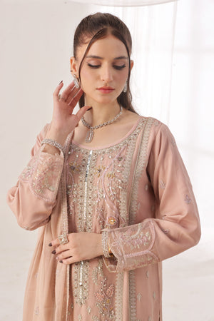 Elevate your wardrobe with our Luxury Embroidered Chiffon Collection, crafted to perfection for the modern woman who values both style and sophistication. This 3-piece stitched ensemble is designed using premium quality chiffon fabric, known for its graceful flow and lightweight feel.
