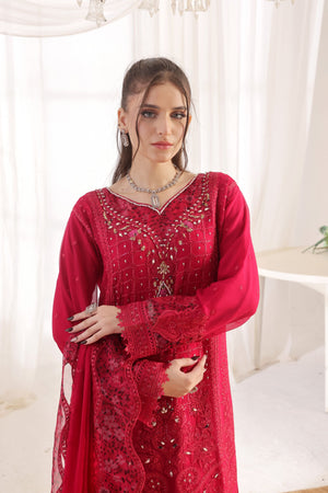 Elevate your wardrobe with our Luxury Embroidered Chiffon Collection, crafted to perfection for the modern woman who values both style and sophistication. This 3-piece stitched ensemble is designed using premium quality chiffon fabric, known for its graceful flow and lightweight feel.
