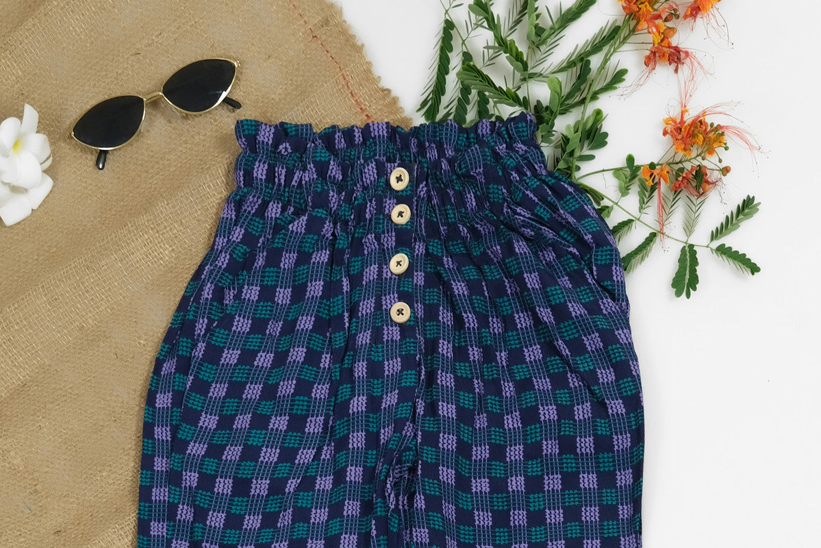 Sprinkles Stitched 1 Piece Summer Bottoms Women Collection'2025-Indigo Gingham Straight Pant Front Button
