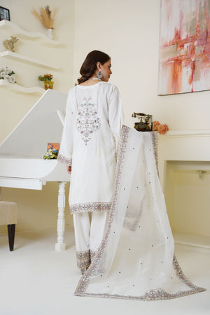 Threads & Weaves Ivory White Embroidered Viscose 3-Piece Suit