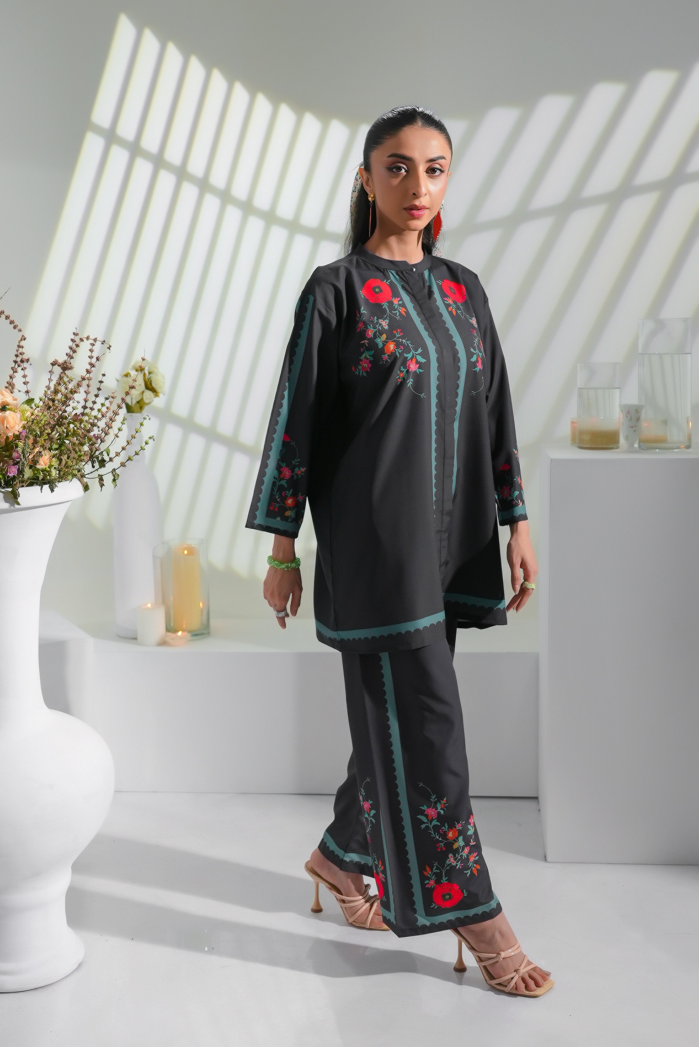 This 2 piece printed-colored co-ord set features luxurious and comfortable fabric and impeccable cuts given to every detail of the article, offering versatility and sophistication for any occasion.