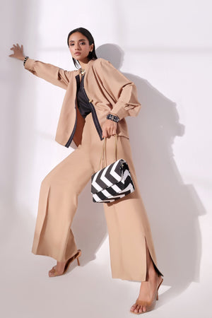Ora Fashion Stitched 2 Piece Summer Collection'2025-Ora Fashion Khaki Top & Pent Set