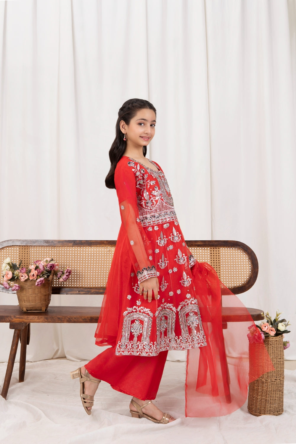 • 3 - Piece Embroidered Shirt, Dupatta and Flapper
