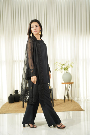 Introducing our elegant black embroidered Coat. This mid-length Coat features intricate embroidery and is made from high-quality fabric for comfort and style.