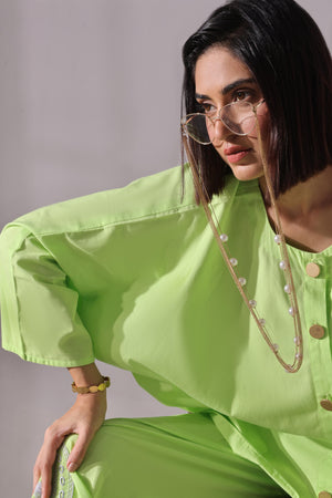 Step into bold minimalism with our Lime Luxe co-ord set — a refreshing fusion of vibrant color and understated elegance. Crafted from a soft, breathable fabric in a striking lime green, this set is designed to turn heads while keeping you effortlessly comfortable.