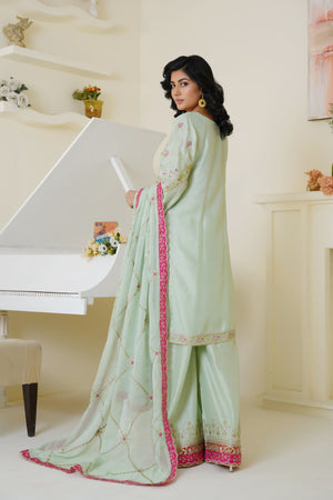 Threads & Weaves Mint Green & Pink Embroidered Viscose 3-Piece Suit