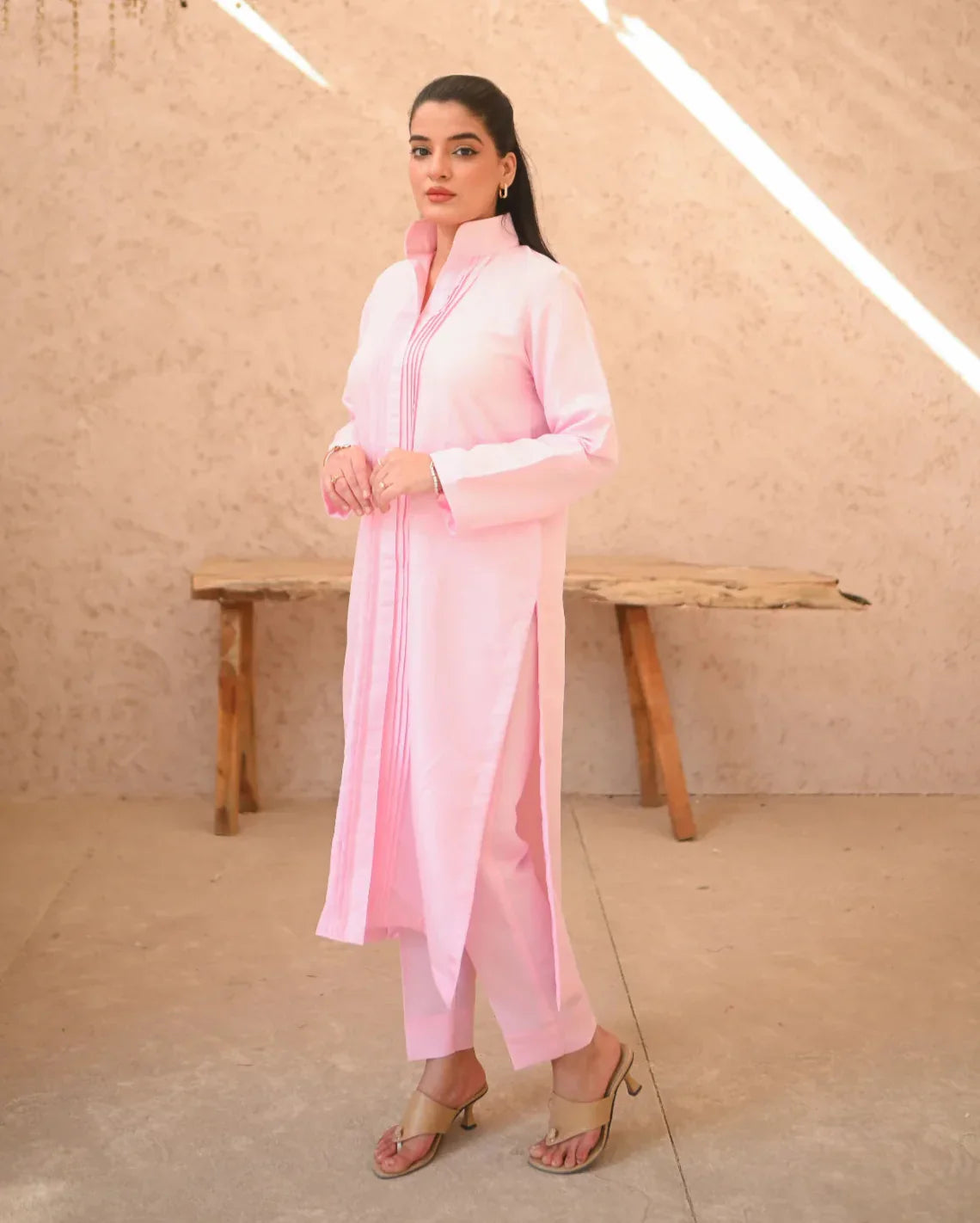 Zauk Stitched 2 Piece Collection-Misty Rose