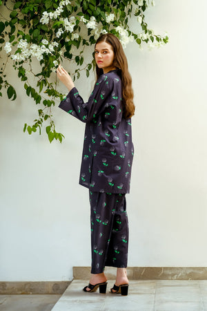 Introducing the FruityBlack, a chic two-piece cotton lawn outfit designed for summer comfort and style. The set features a breathable, lightweight fabric perfect for warm weather. The standout feature is the elegant black fabric adorned with a playful white fruit print, adding a touch of whimsy to your summer wardrobe. Perfect for women who love combining comfort with unique style, the FruityBlack is a must-have for the season.