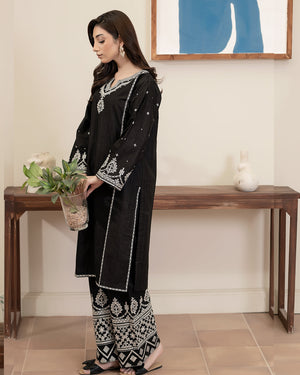 Flutterby Stitched 2 Piece Cotton Satin Winter Collection'2025-Avery-bk