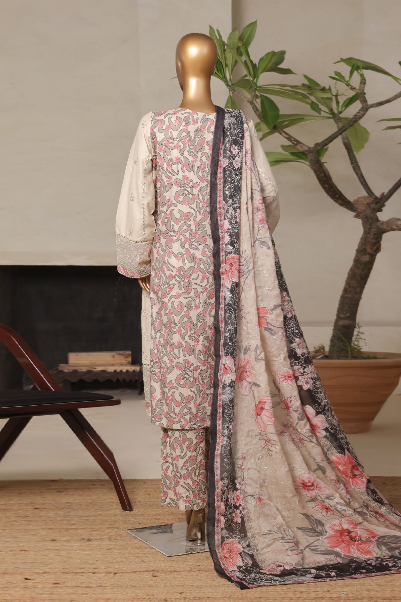 Bin Saeed Stitched 3 Piece Luxury Plain Cotton With Printed Back Vol-02 Collection'2025-NSM-2228-Skin