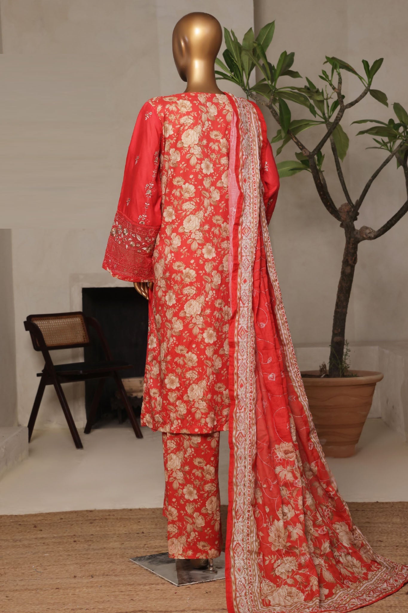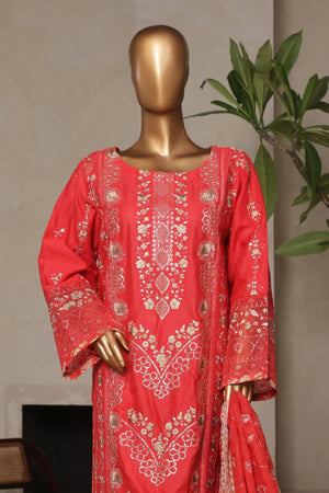 Bin Saeed Stitched 3 Piece Luxury Plain Cotton With Printed Back Vol-02 Collection'2025-NSM-2229-Orange
