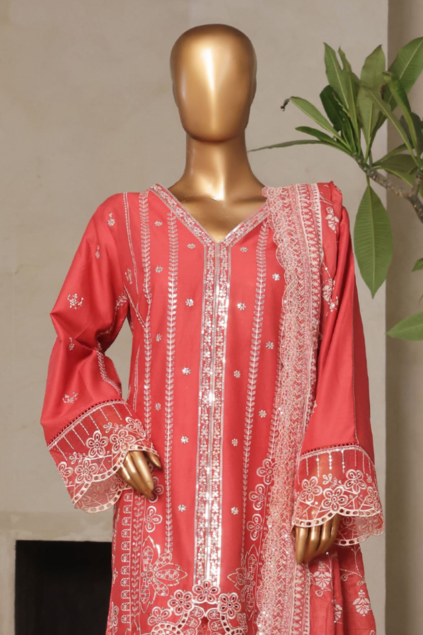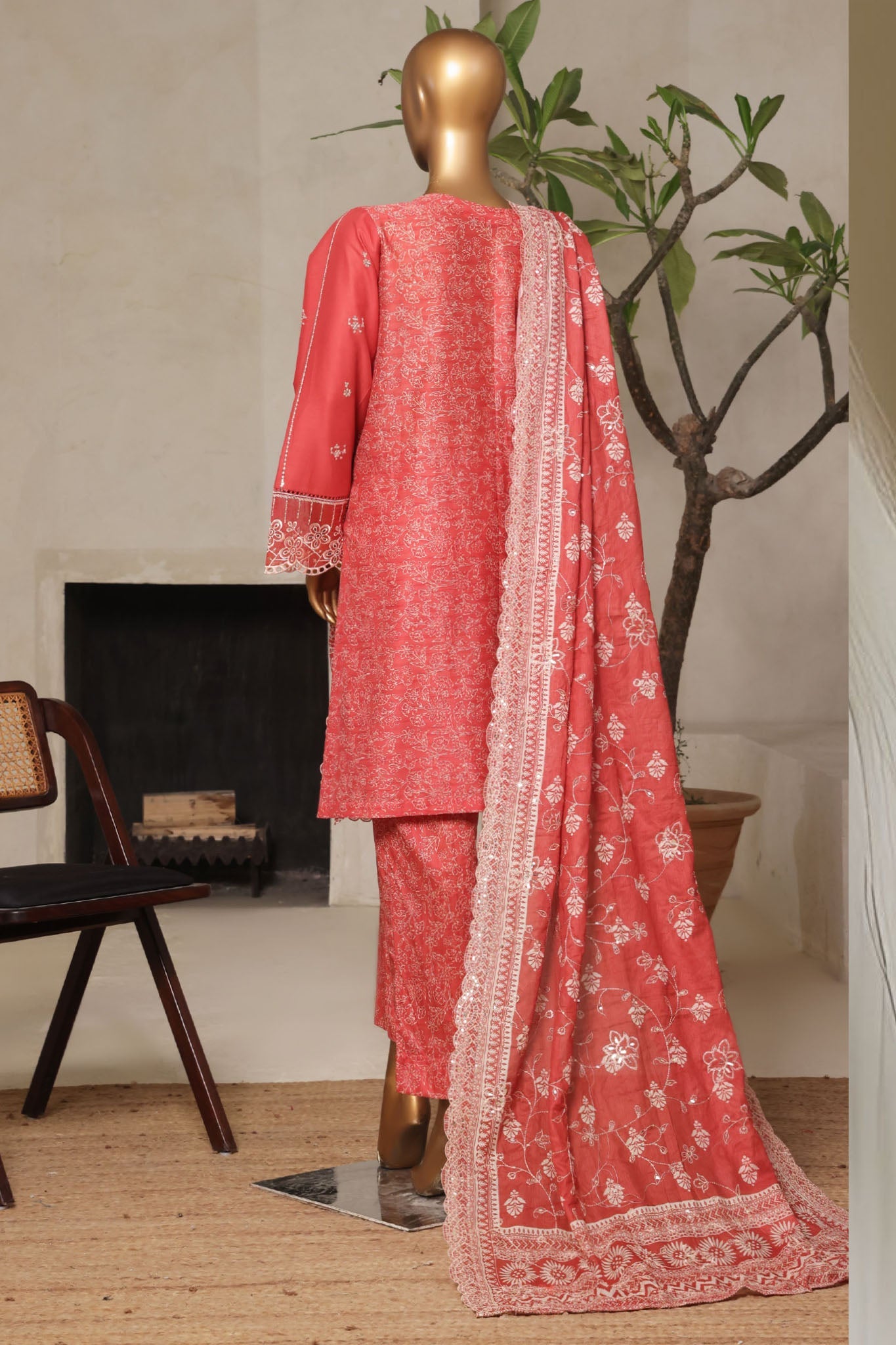 Bin Saeed Stitched 3 Piece Luxury Plain Cotton With Printed Back Vol-02 Collection'2025-NSM-2235-Rust
