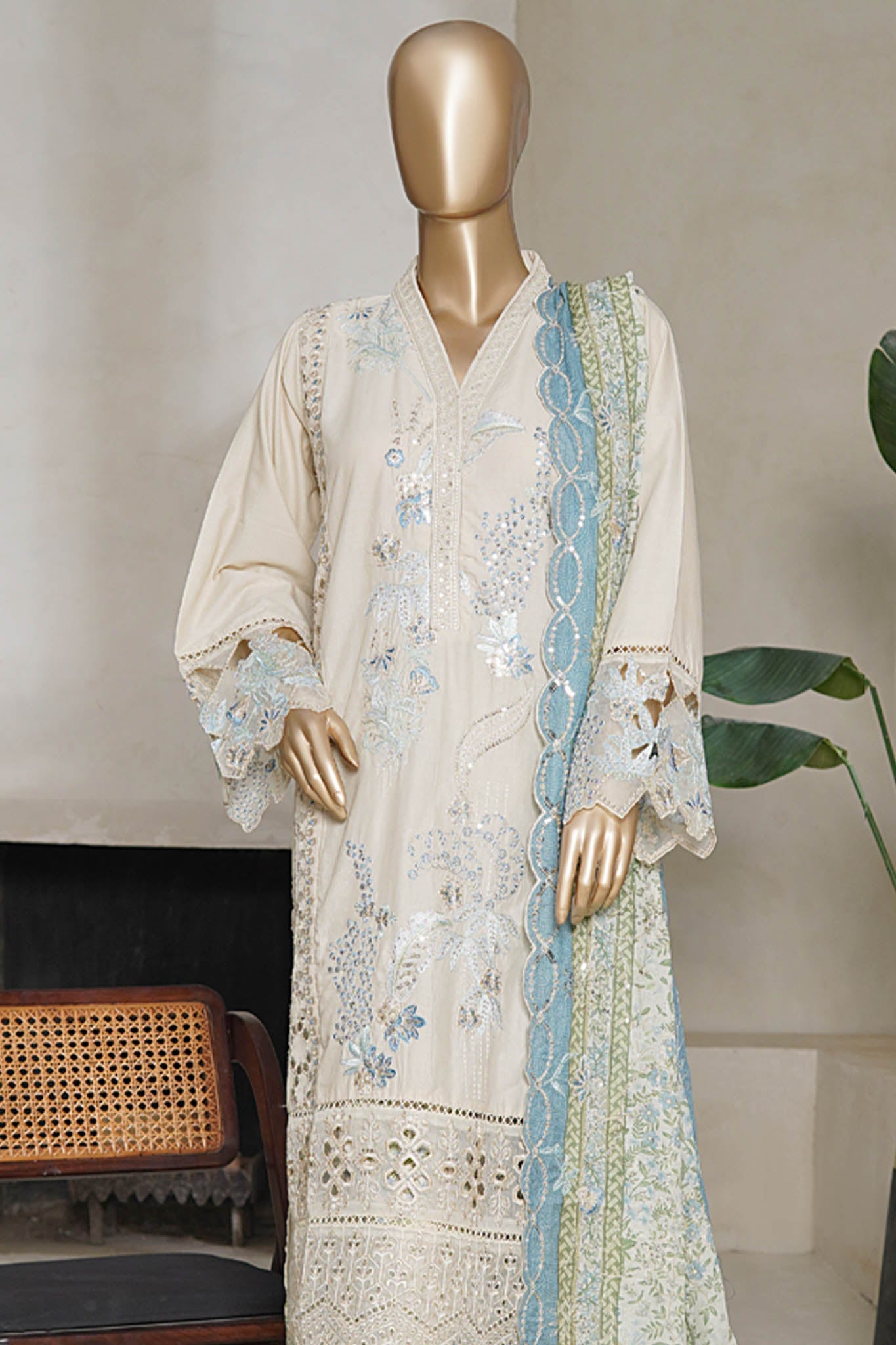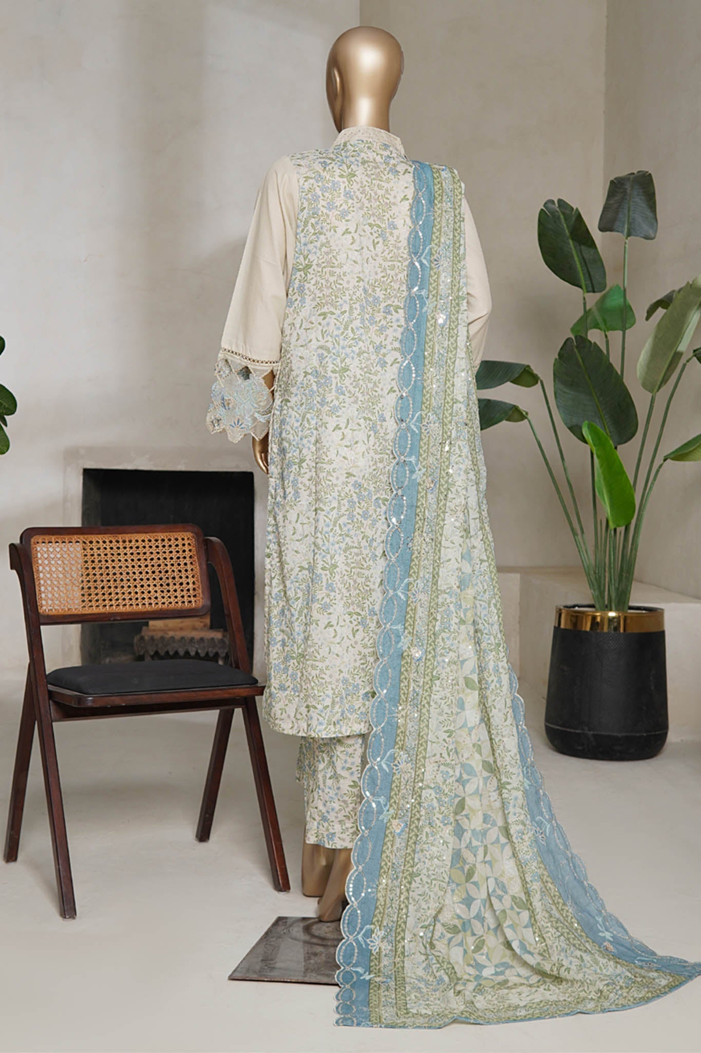 Bin Saeed Stitched 3 Piece Luxury Plain Cotton With Emb Printed Back Collection'2025-NSM-2476-Skin