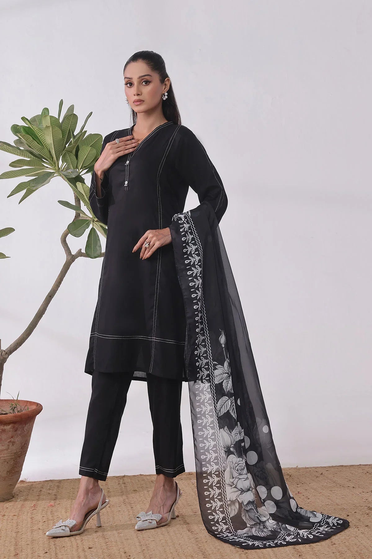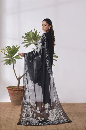 Dupatta: Black Silk Digital Printed Dupatta