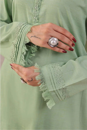 Top: Green Slub Lawn Kurta With LacesÂ