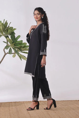 Top: Black Cotton Kurta With Embroidery