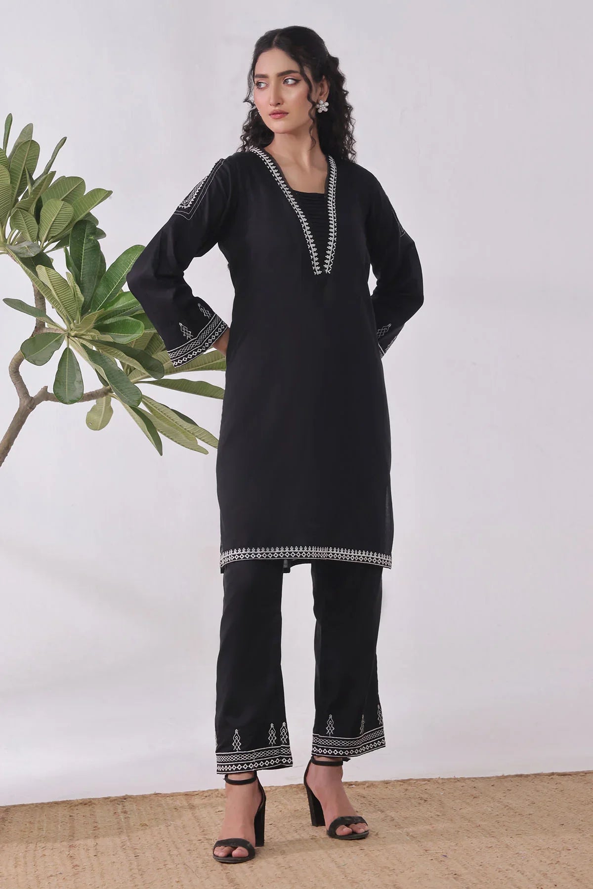 Bottom: Black Cotton Trouser With Embroidery