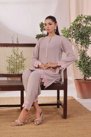 Top: Grey Rod Silk Kurta With Crotia Laces