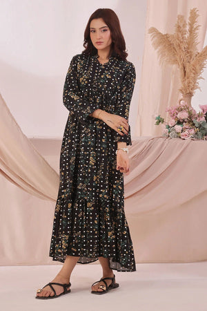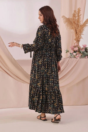Ochre Clothing Women's Casual -Boski Linen Printed Dress-SOD-09