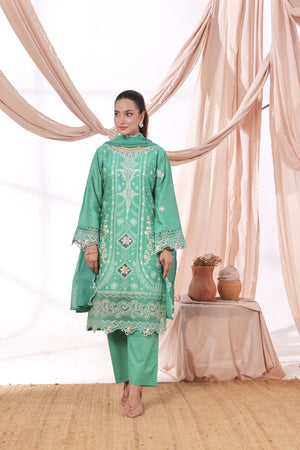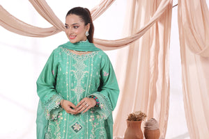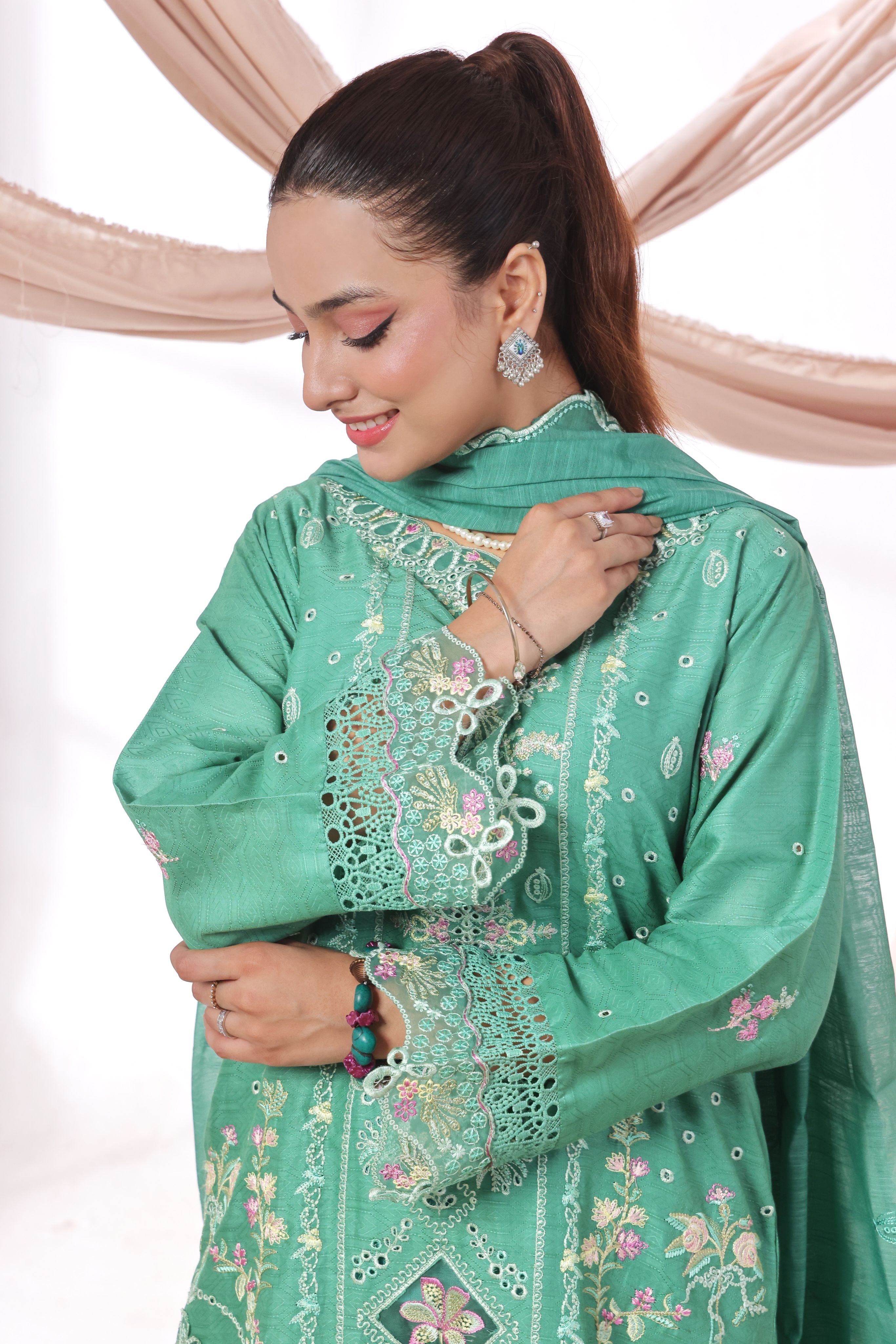 Elegance experience timeless grace with our Stitched Embroidered Jacquard Lawn Suit, blending modern design with traditional charm.