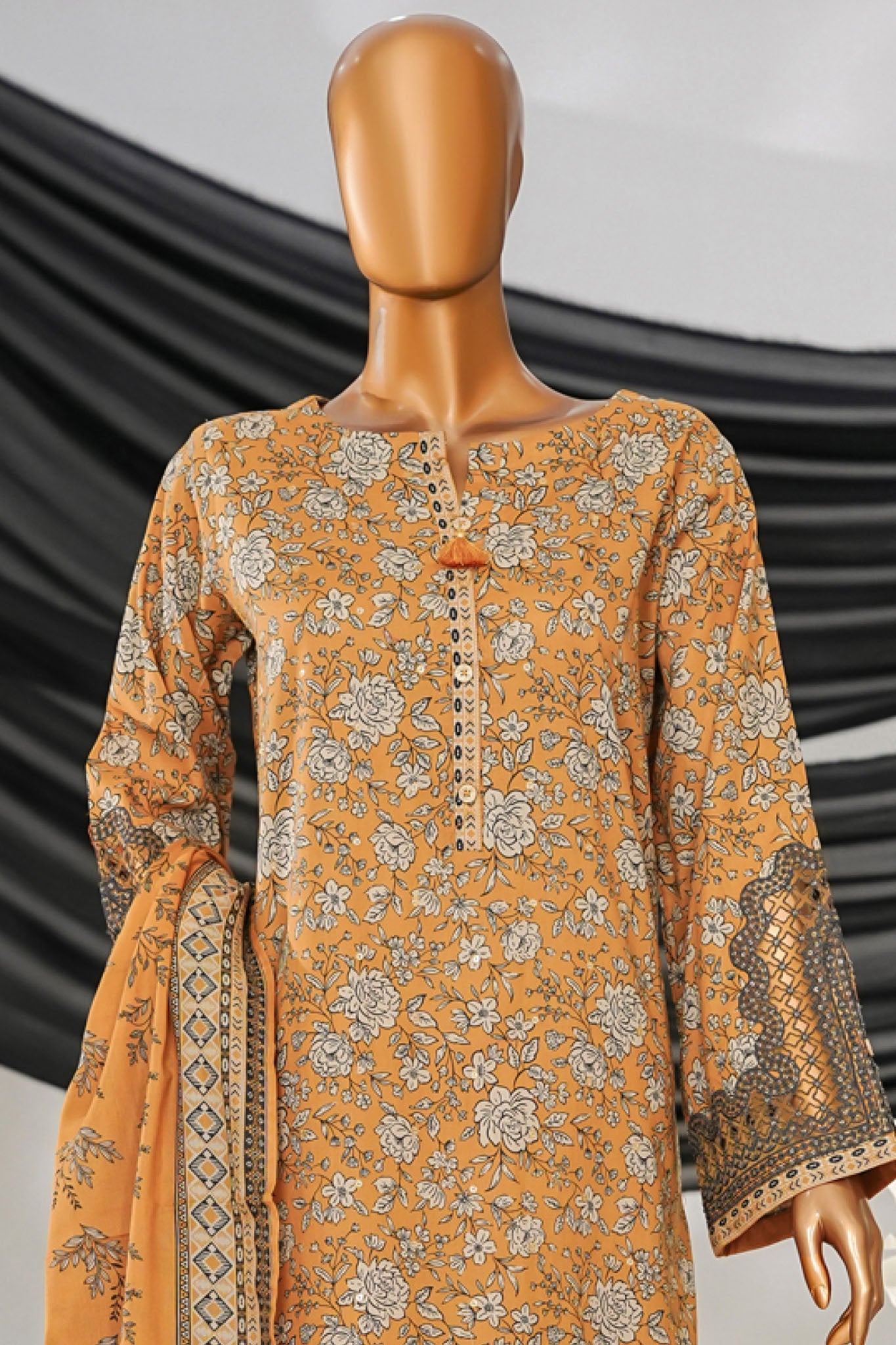 Intermix Thread & Needle By HZ Stitched 3 Piece Emb Cambric Collection'2025-POEL-3P-008-Mustard