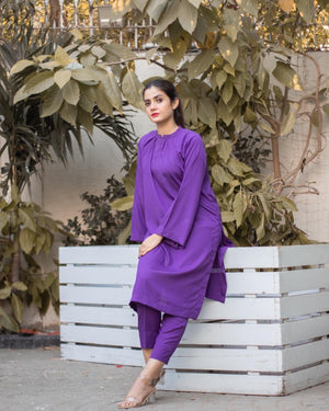 Zauk Stitched 2 Piece Collection-Purple Two Piece Dress