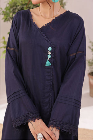 Top: Navy Blue Blue Chambray Cotton Kurta With Crotia Laces